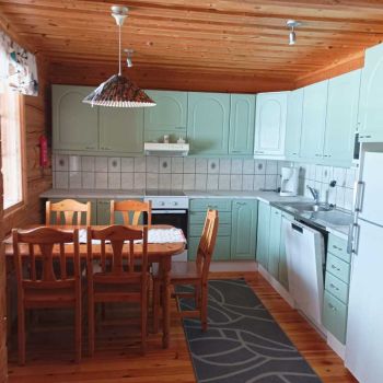 Sauna on puulämmitteinen. Ulkoterassit. Kylmä ja lämminvesi, sähkölämmitys, ilmalämpöpumppu (kesällä viilennys mahdollisuus), keittiössä astiat ja koneet mm. jenkkikaappi, astianpesukone ja mikroaaltouuni. Käytettävissä tv, Wi-Fi ja pesukone. Takassa voi paistaa vaikka itse ongittua kalaa.