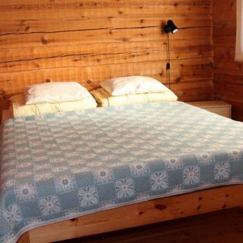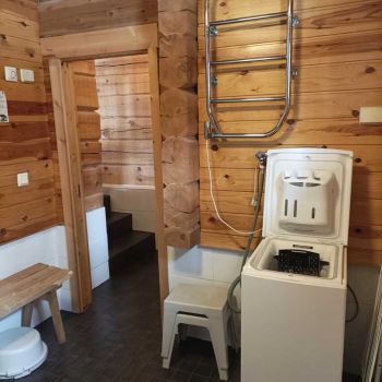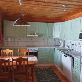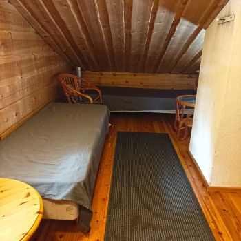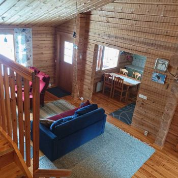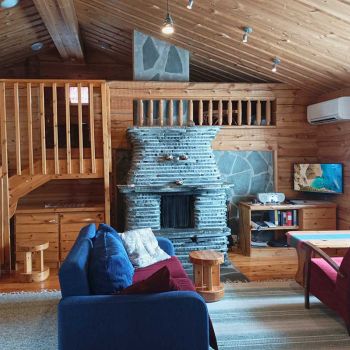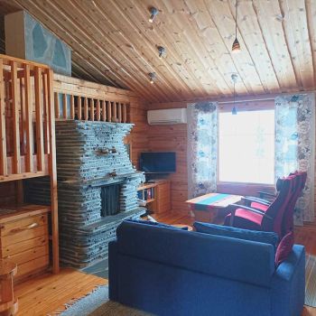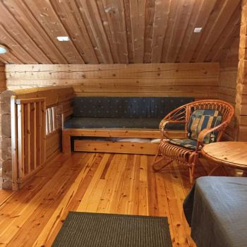 Tilaa 80 m2, joista parvella 13 neliötä. Asiakkaat kehuneet pohjaratkaisua, jossa saunatilat ja wc puolikerrosta alempana parven alla. Vuodepaikkoja 6, lisävuoteilla saa lisää tilaa. Tuvassa suuri luiskekivitakka.