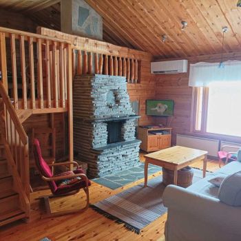 Tilaa 80 m2, joista parvella 13 neliötä. Asiakkaat kehuneet pohjaratkaisua, jossa saunatilat ja wc puolikerrosta alempana parven alla. Avara tupa, keittiö, makuuhuone, sauna sekä suihku ja sisä-wc. Vuodepaikkoja 6, lisävuoteilla saa lisää tilaa. Tuvassa suuri luiskekivitakka. Sauna on puulämmitteinen. Ulkoterassit.